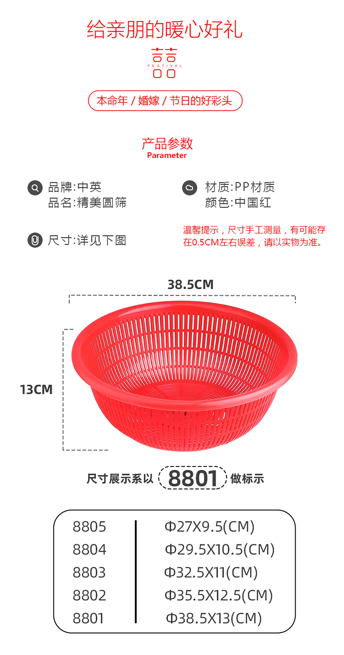 精美圓篩 大紅色