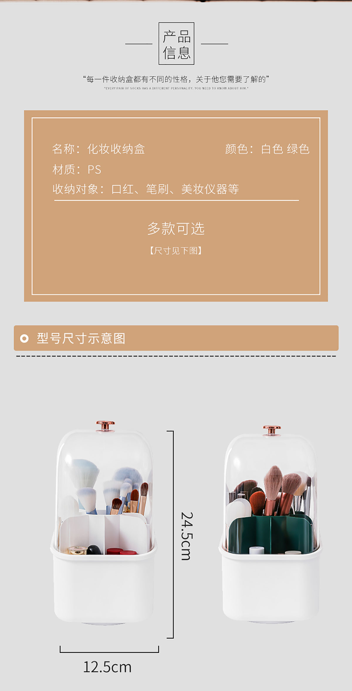 方形化妝收納盒 (帶蓋/不帶蓋)