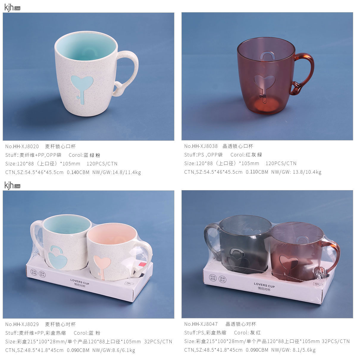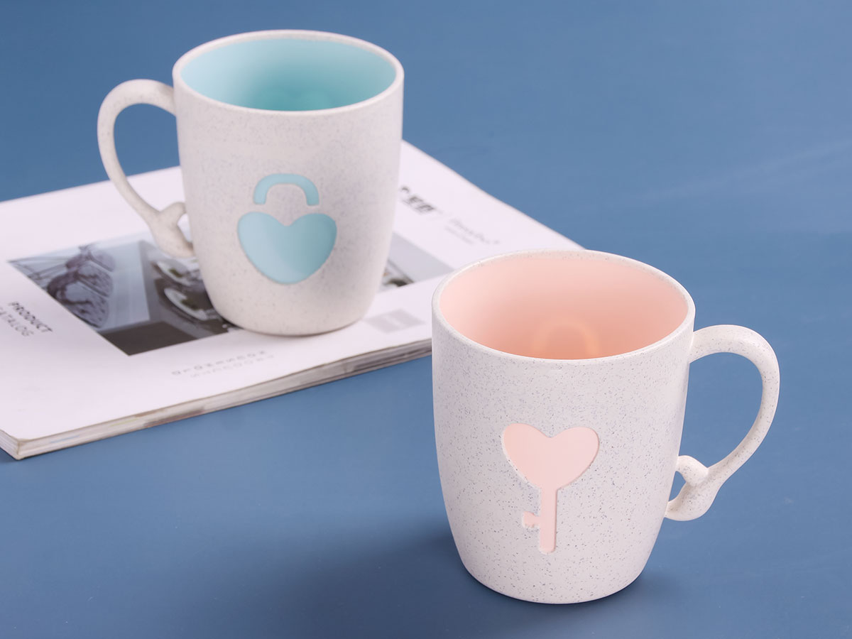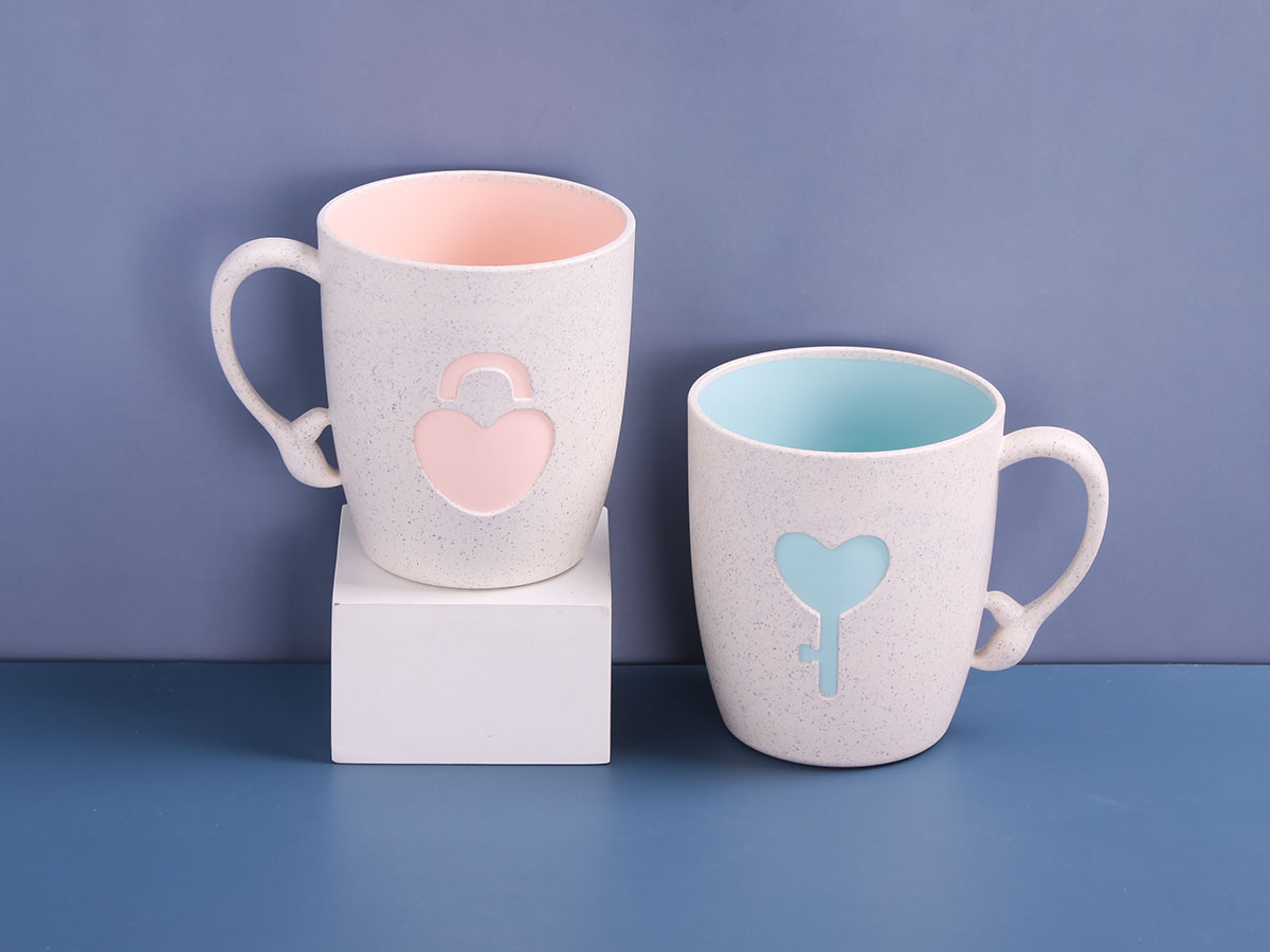 麥稈鎖心對杯(480ml):彩盒215*100*28mm/單個產(chǎn)品120*88(上口徑)*105mm