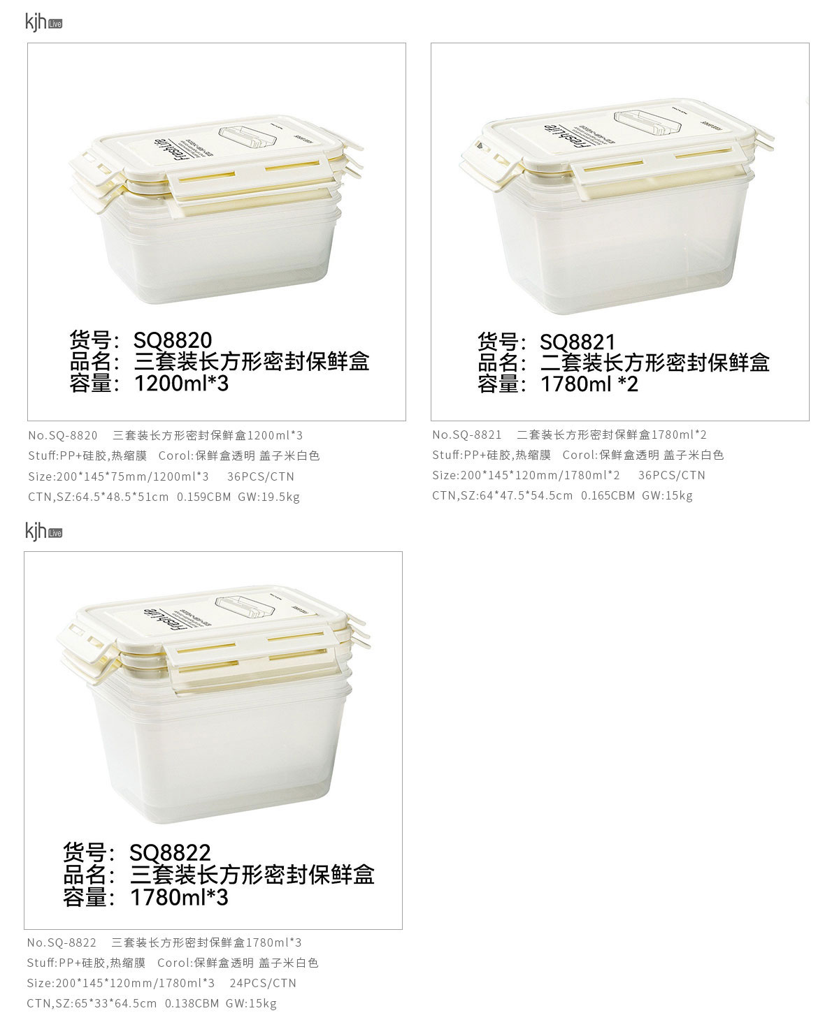 SQ-8820:200*145*75mm/1200ml*3