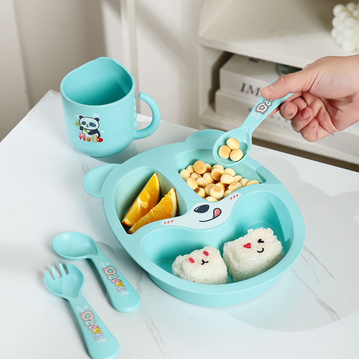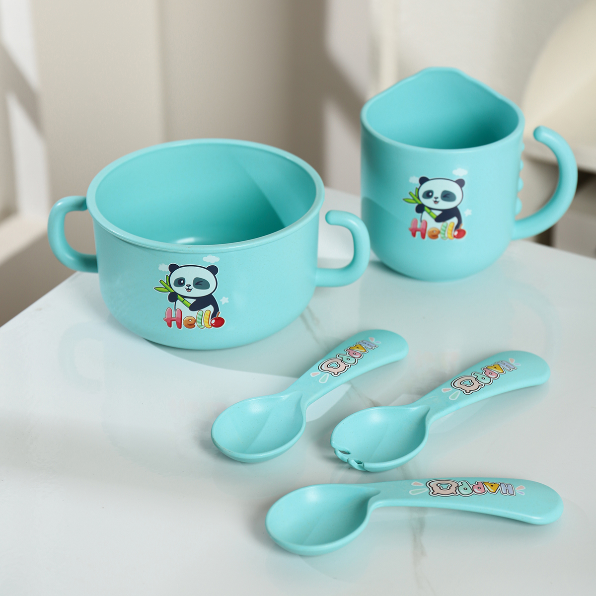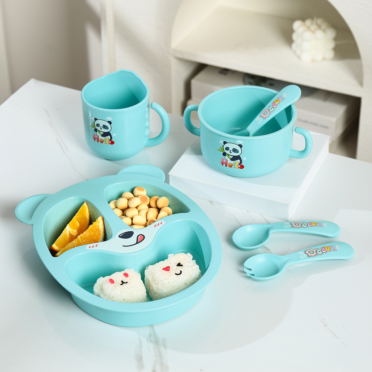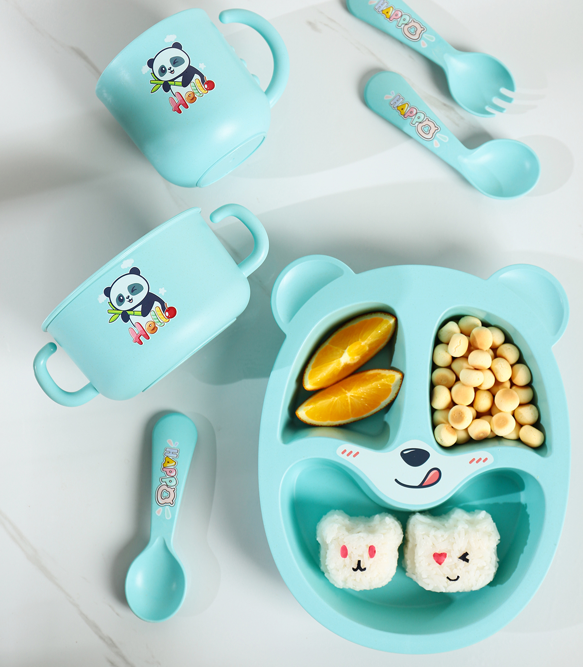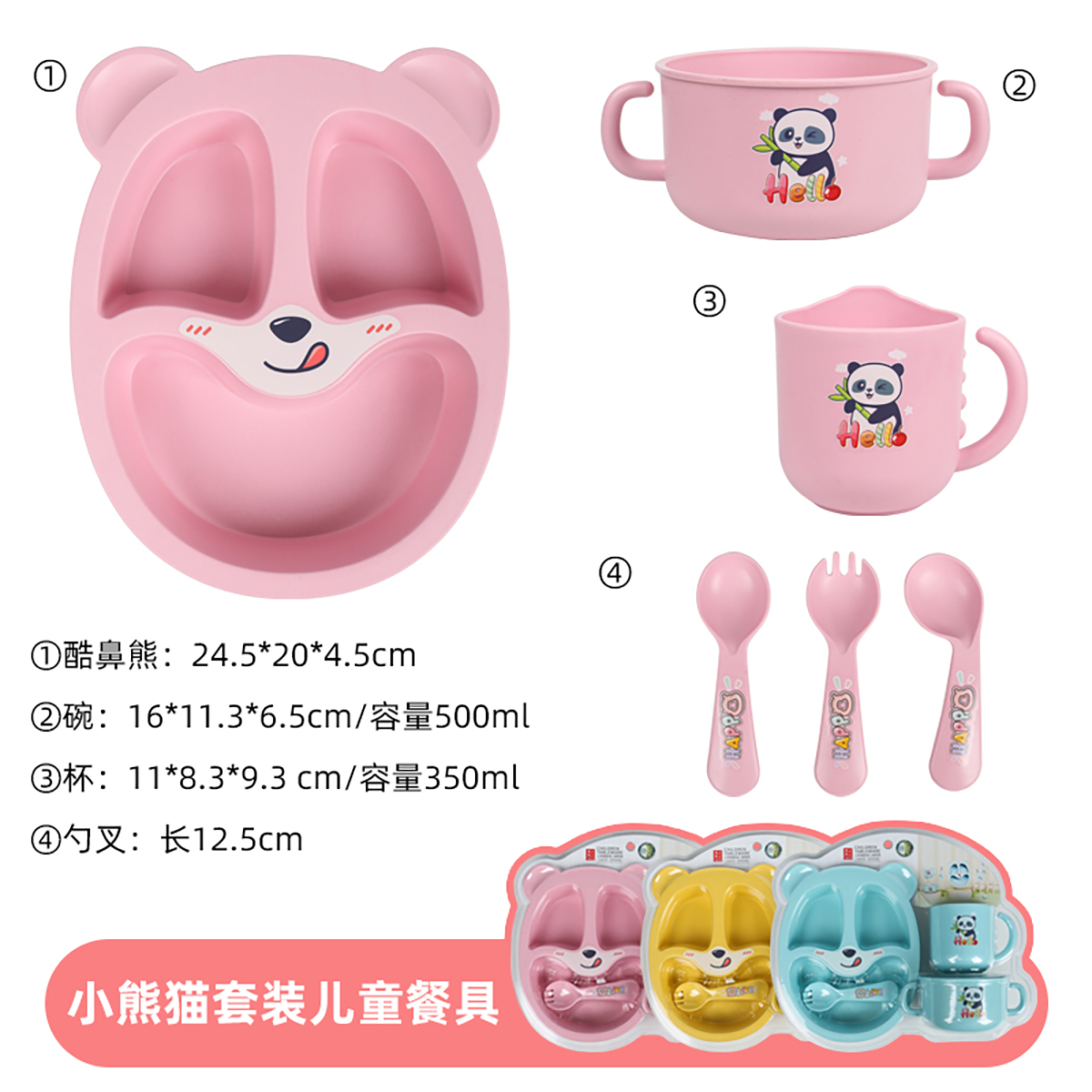 Size: 餐盤:245*200*45mm 碗:160*113*65mm/500ml 杯:110*83*93mm/350ml 勺叉:125mm