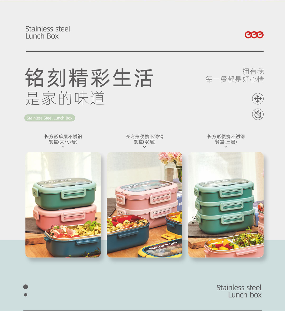 長方形單層(小號/大號)便捷(雙層/三層)不銹鋼餐盒
