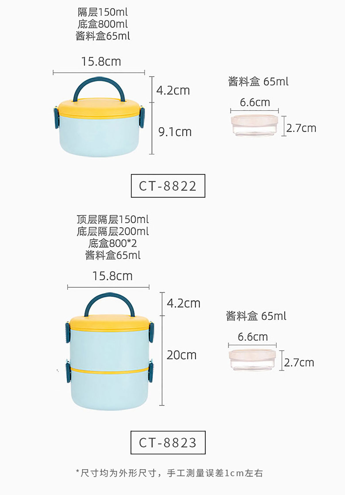 CT-8823(雙層/帶沙拉盒):158*200mm/800+800ml+沙拉盒65ml