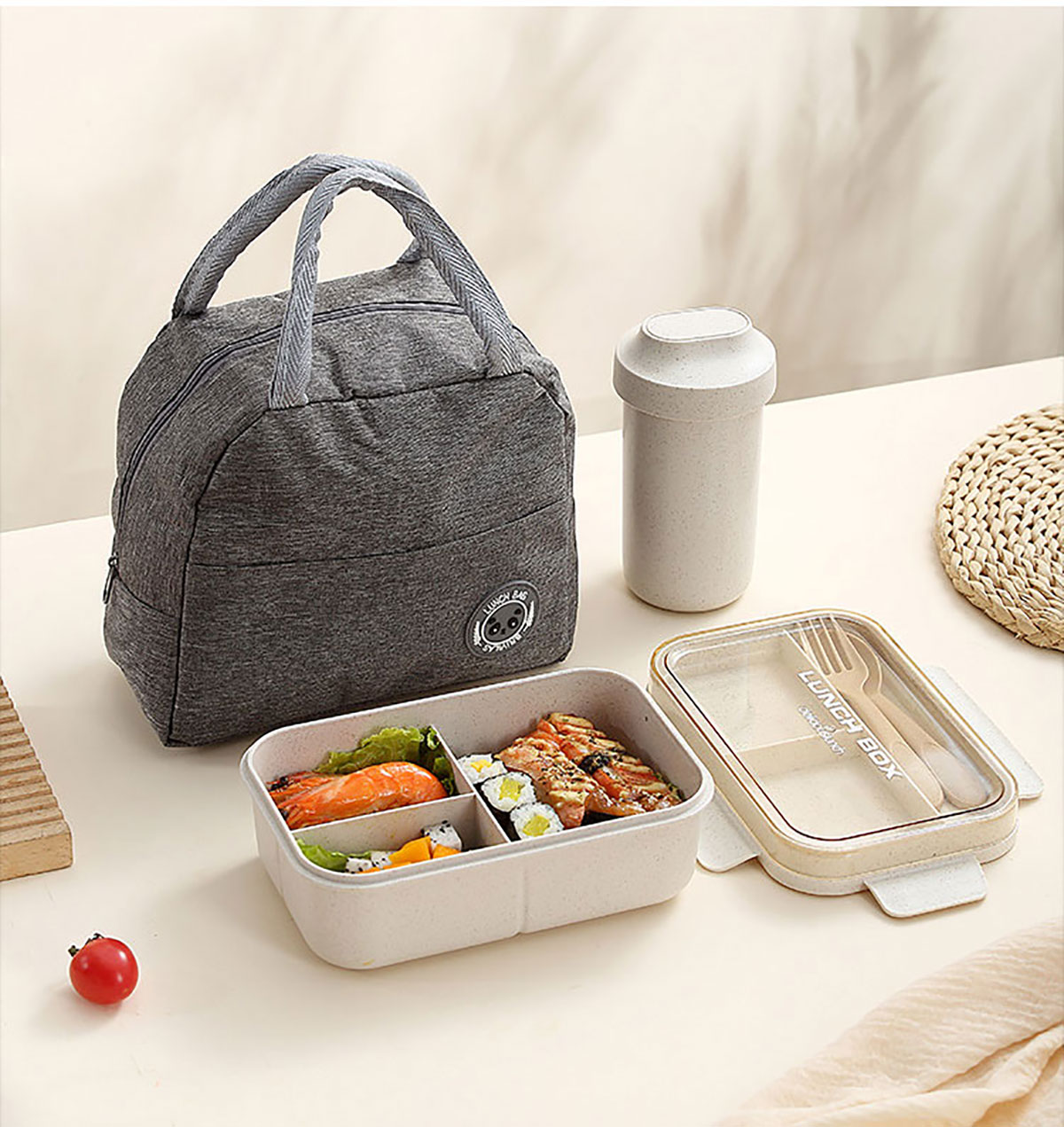 簡麥便當(dāng)盒飯盒/套裝(飯盒+水杯/飯盒+水杯+灰色餐袋/飯盒+燕麥杯+灰色餐袋)