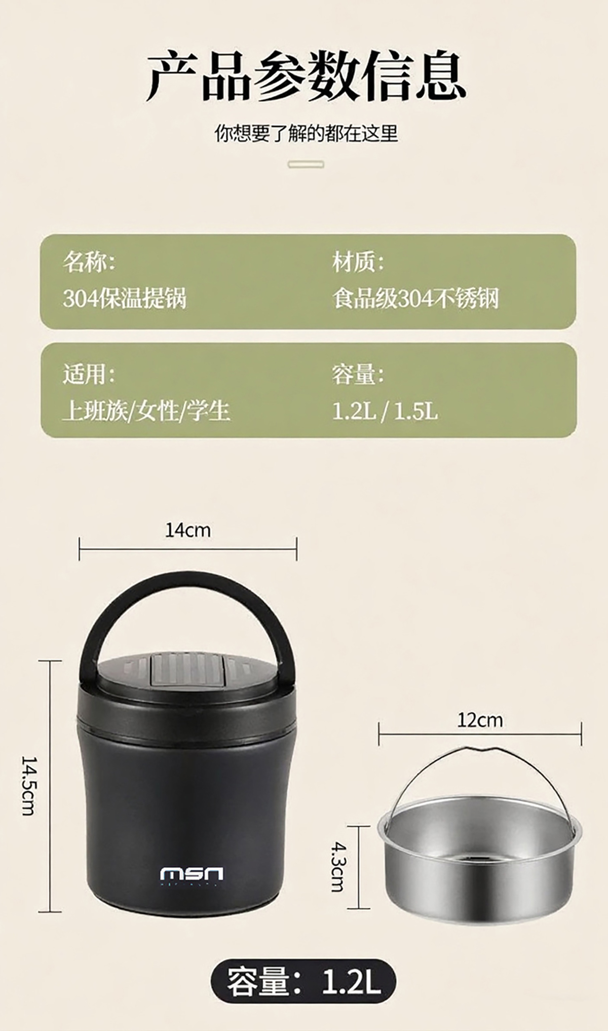 Size: MSN-1005(小號(hào)):140*145mm/1200ml 格子:120*43mm