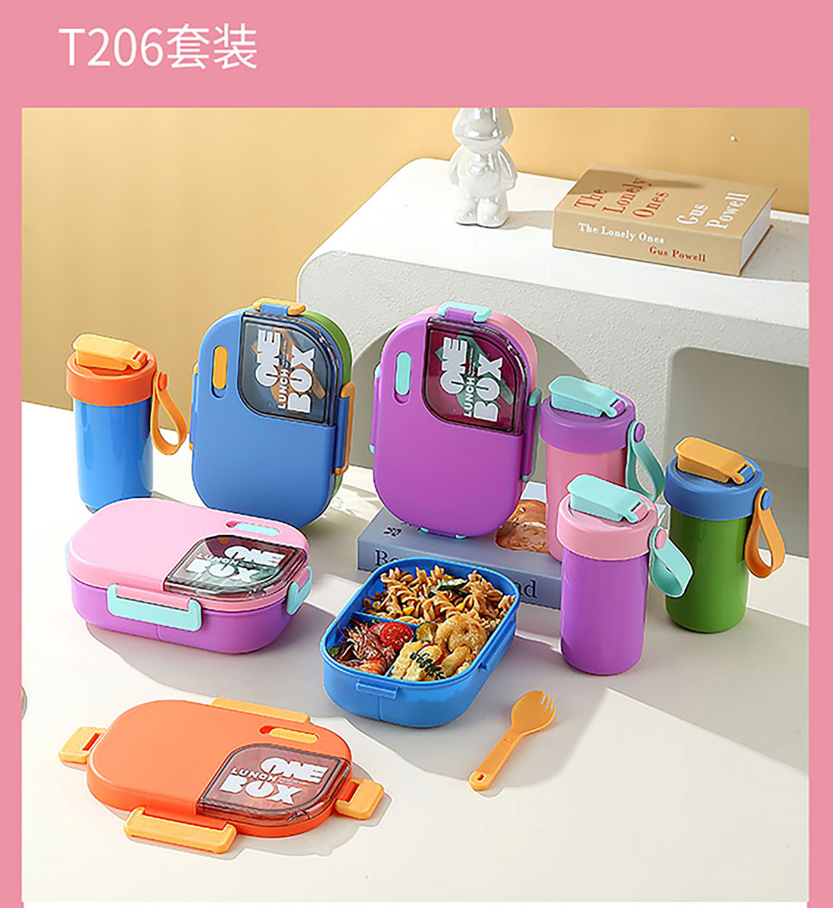 SWY-T206(水杯套裝):飯盒:215*149*71mm/1000ml 水壺:直徑82*高161mm/480ml