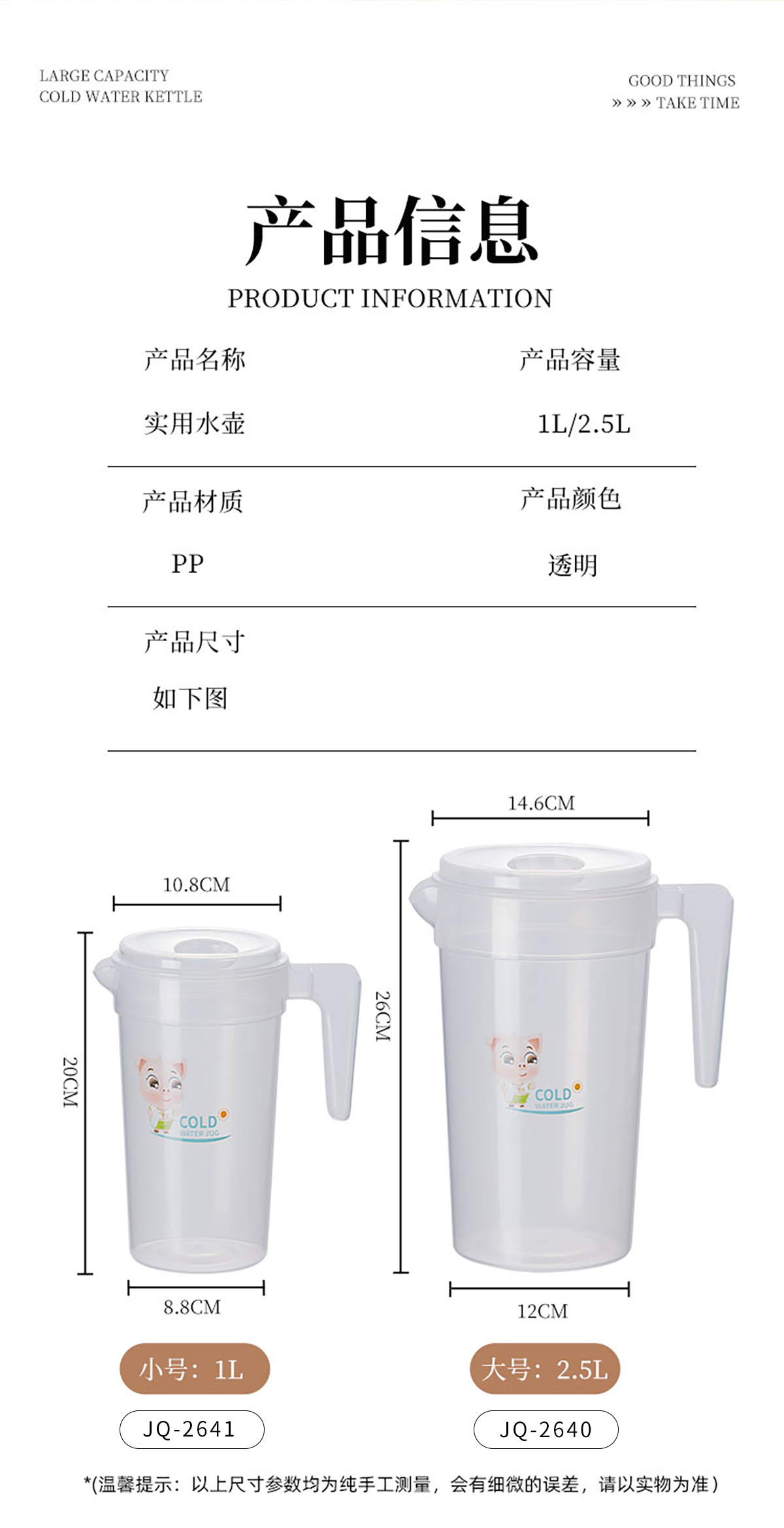 Size: JQ-2640(大號(hào)):146*120*260mm/2.5L JQ-2641(小號(hào)):108*88*200mm/1L