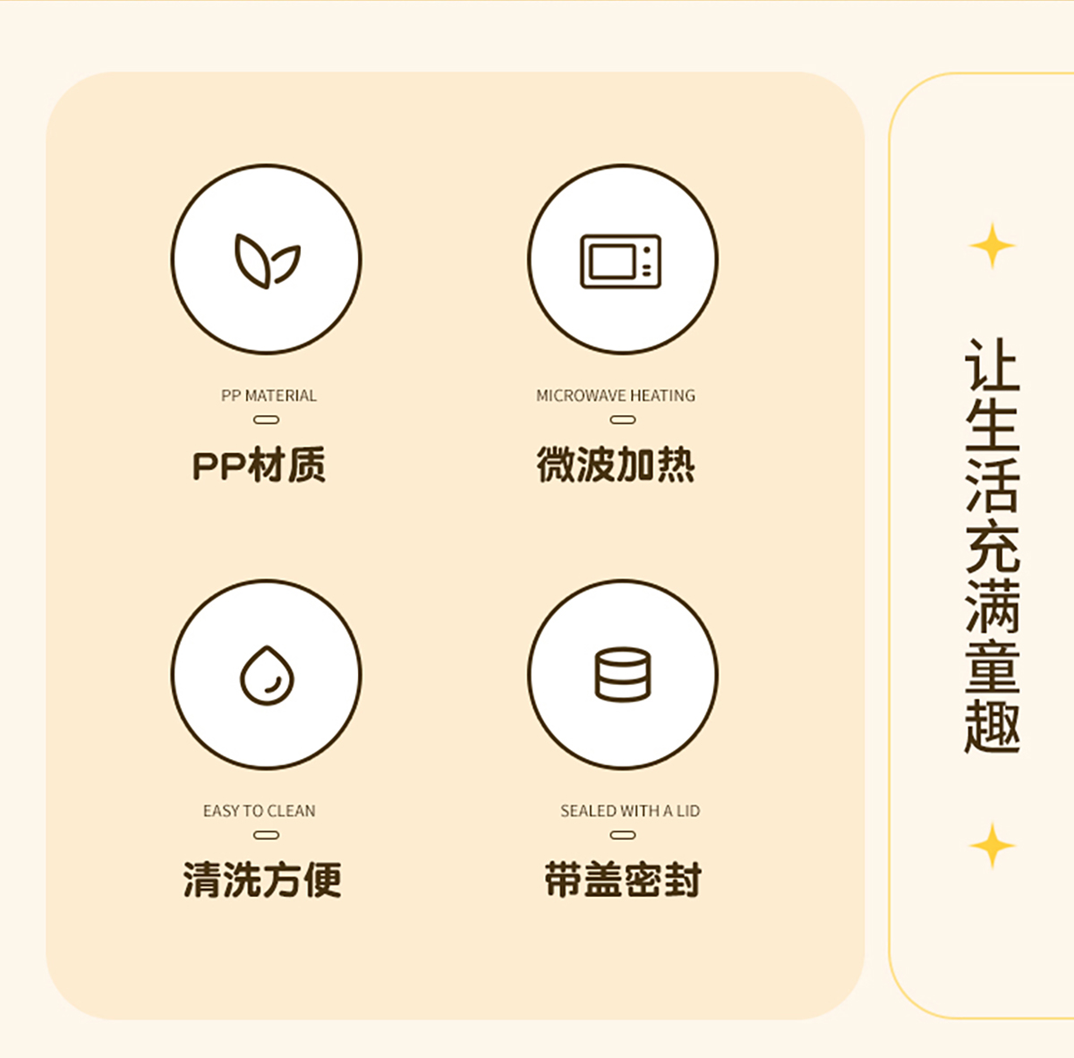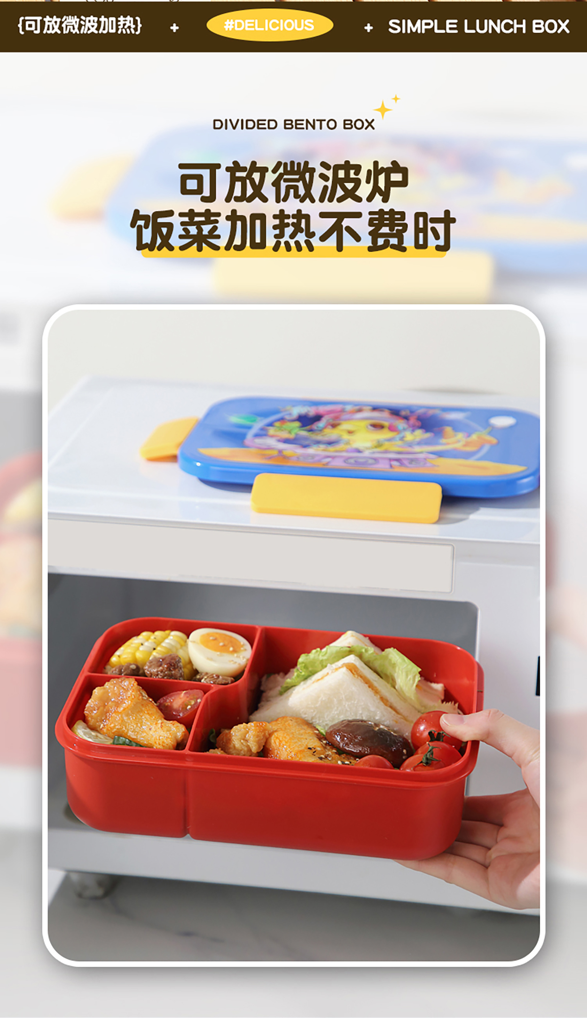 卡通實色蓋分格飯盒1450ml