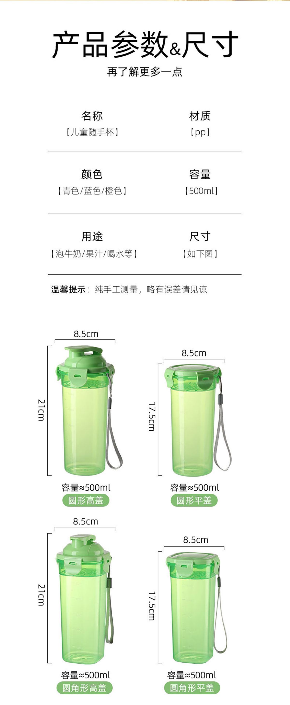 500ml圓形實(shí)用水杯(平蓋/高蓋)